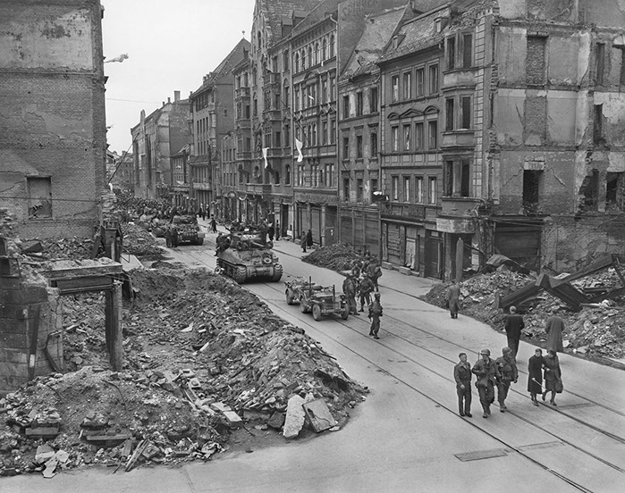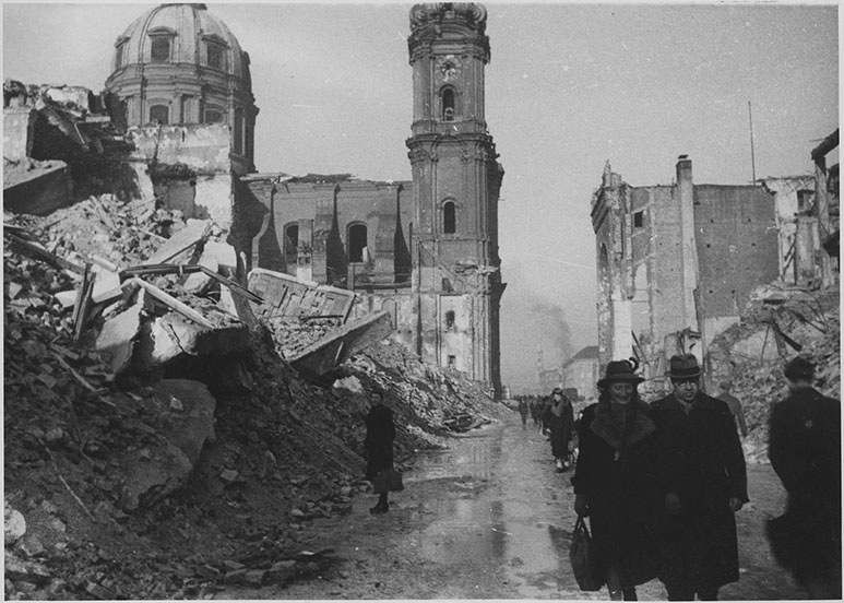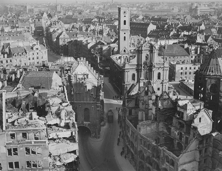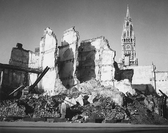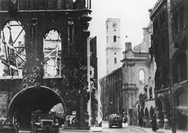 Mit der Kapitulation deutscher Soldaten und der Übergabe des Rathauses endet die nationalsozialistische Diktatur in München. Die Stadt ist zu rund 50 Prozent zerstört, in der historischen Altstadt sind es sogar bis zu 90 Prozent.